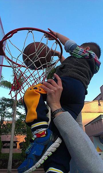 洋洋人生的第一次灌籃,帥呀!謝謝威猛高大的明正叔叔。