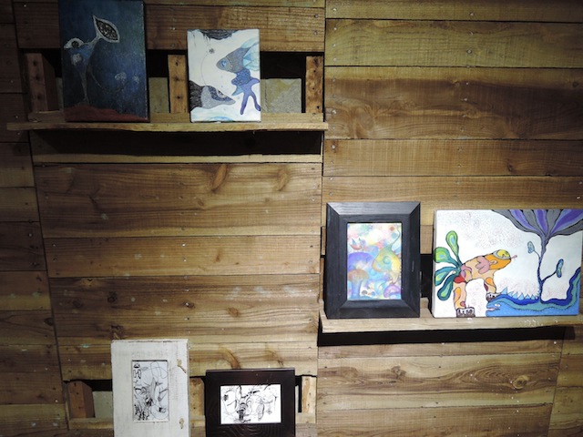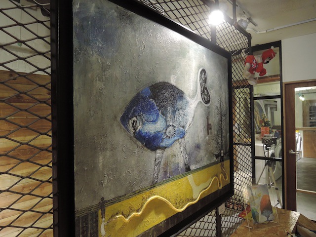 最近她在一間頗有味道的咖啡館有個小展覽,咖啡館的名字很有趣,叫穿越九千公里交給你,是她這幾年走入婚姻後的創作,和以前的空間與夢境的風格顯然已經不同,也結合了藝術與插畫,作品在這間有工業風的咖啡館展出,感覺很對味,展覽只到12/21,在台北的朋友可以去看看,咖啡館的甜點也很不賴。