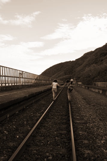 曾經與妳共渡那一個個美麗的夏天就要隨著海潮退去妳的藍色衣裳搖擺著光影流動妳的長髮飄逸散落在深海的巢穴延宕在火車經過隧道的呢喃裡看著妳的背影遠去是否還能留下一絲絲永恆潮溼的記憶沁入海潮輕盈堆疊的沉靜照片慢慢模糊遺忘與存在的瞬間成了一枚時空飄落的膠捲在月台上等待旅人拾起